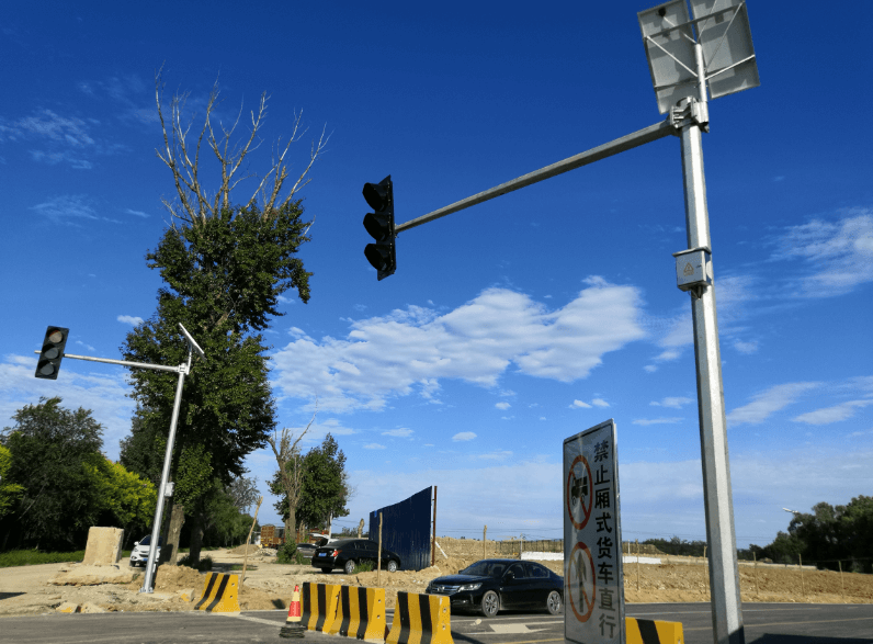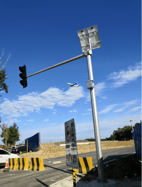 ,由于此路段不便走地下線,故此本次設(shè)計(jì)全部為太陽(yáng)能光伏發(fā)電,紅綠燈監(jiān)控桿安裝完成后將為機(jī)場(chǎng)周?chē)用裉峁┏鲂斜憷麠l件。
